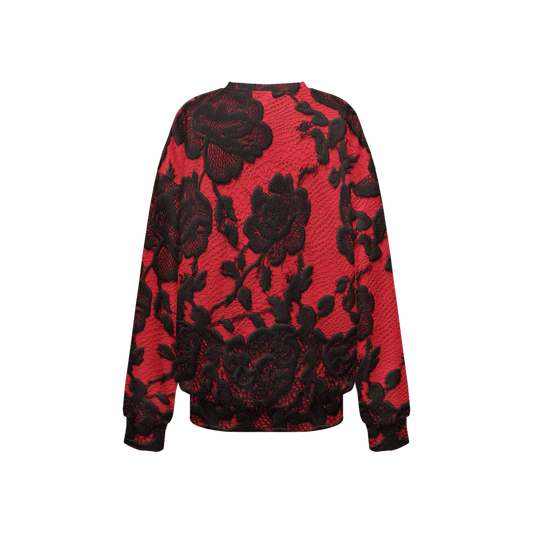 Black Rose Embroidery Faux Leather Bomber Jacket
