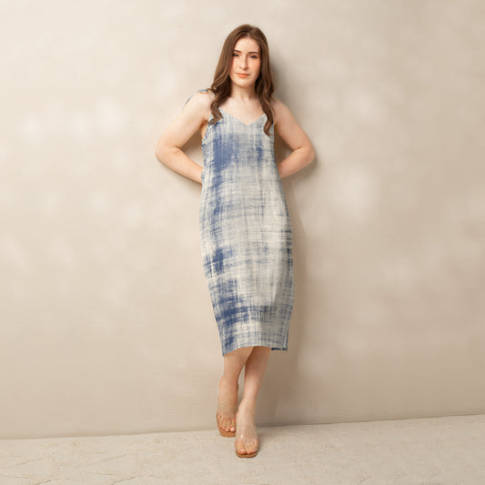 Washed Out Print ¾ Sleeve Wrap Dress (Heavy Knit)