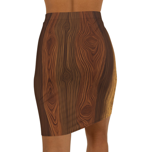 Washed Out Denim Print + Leather Print Back Split Pencil Skirt (Heavy Knit)