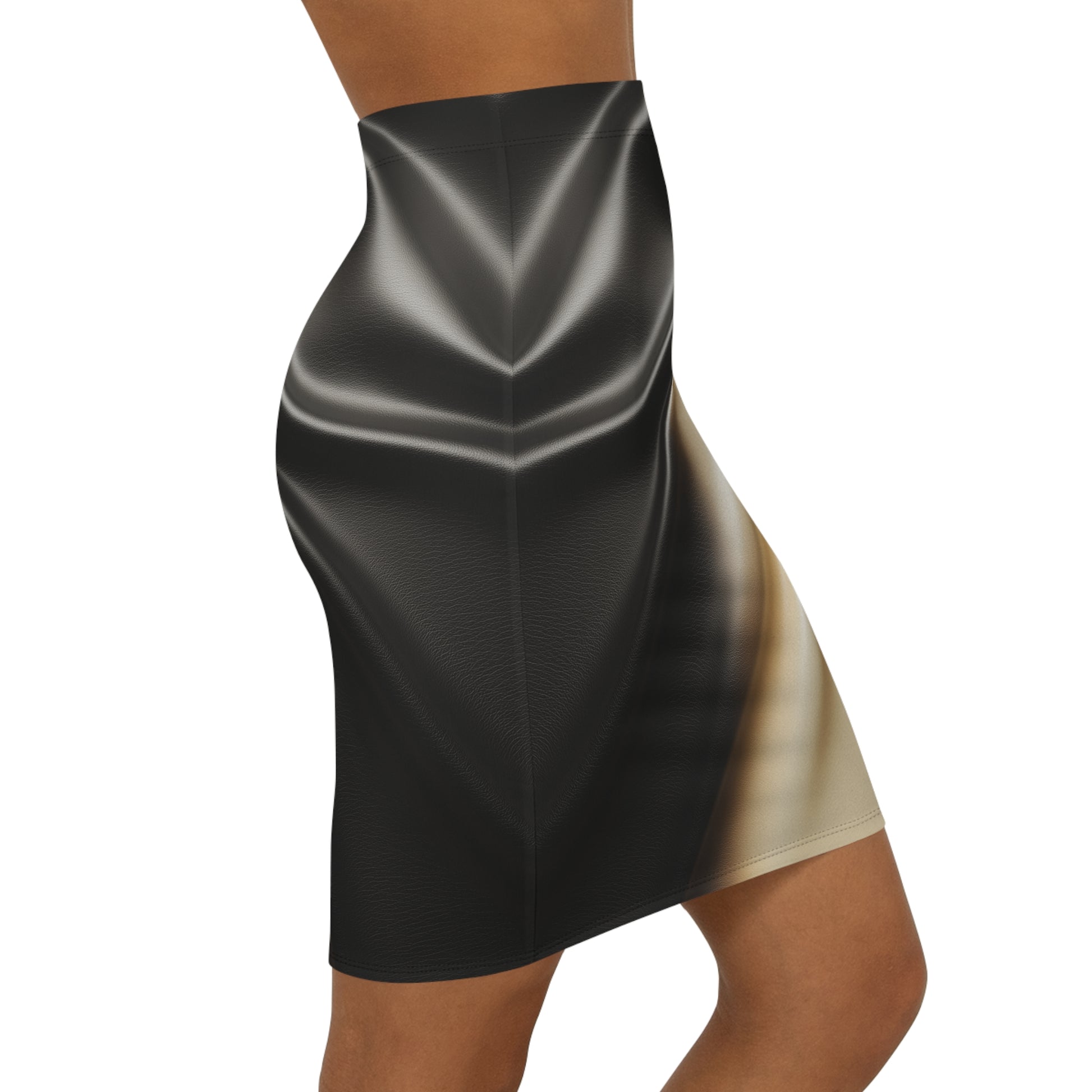 Leather Print Mid-Waist Pencil Skirt Satin Finish