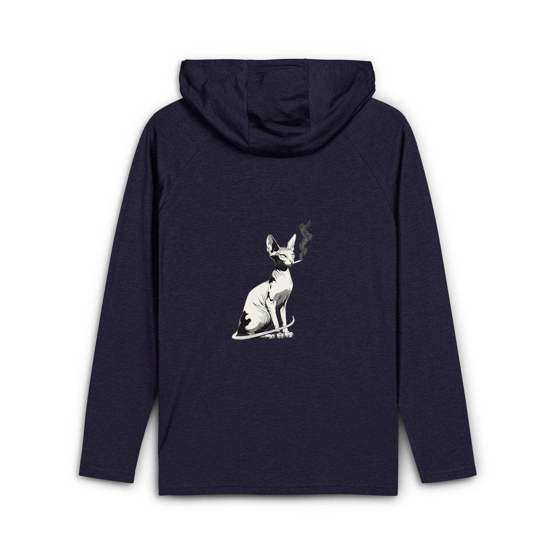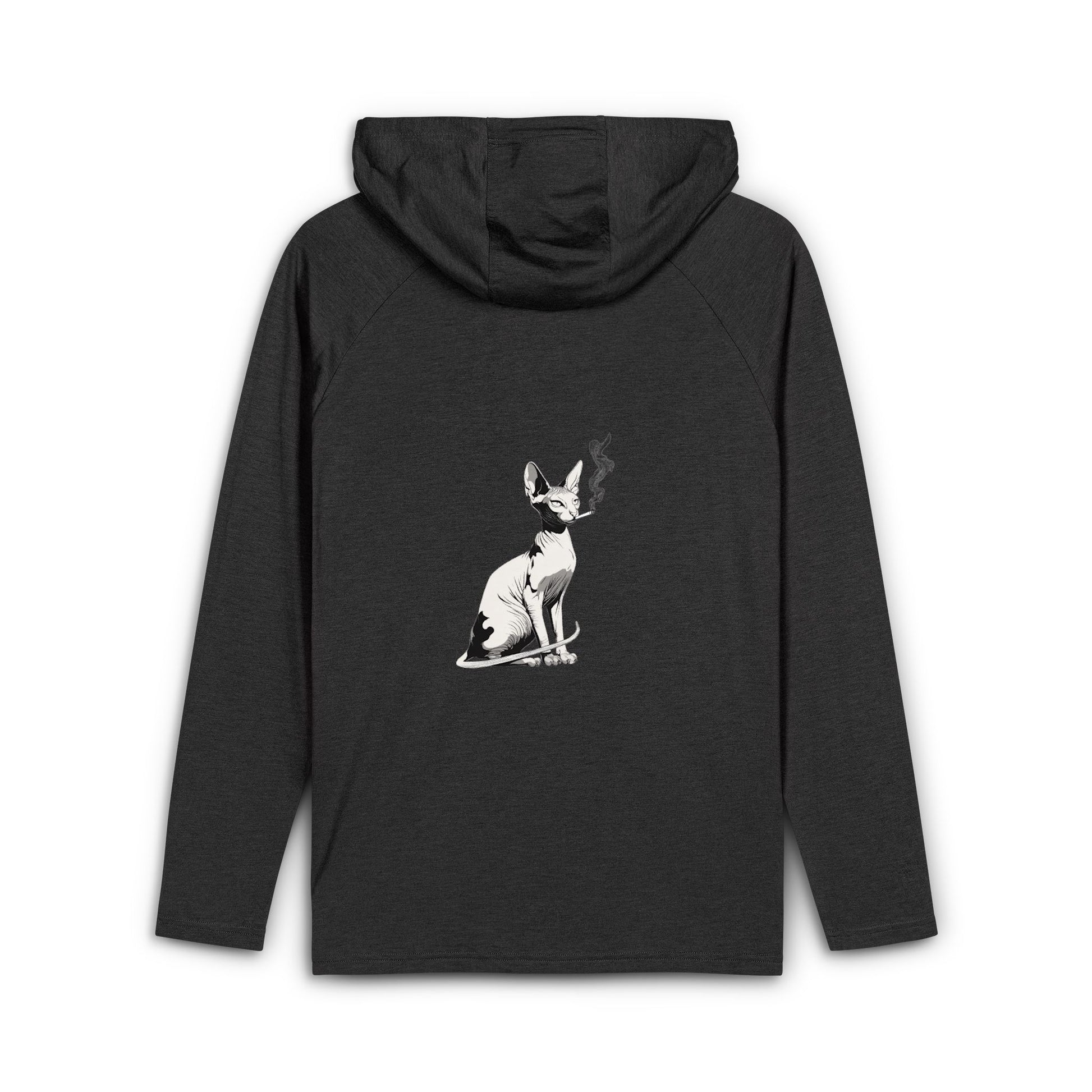 Lightweight, everyday hoodie that blends comfort with subtle attitude. The soft tri-blend fabric feels airy yet structured, moving easily from a morning walk to late-night coffee runs. A 3-panel hood with silicone-tipped drawcords frames your face and keeps the chill at bay, while the roomy kangaroo pocket gives your hands a warm, calm place. The slim, printed care label keeps the neckline clean and the small heat-transfer logo at the pocket adds a low-key signature detail. On the back, a muted graphic of a contemplative cat adds character without shouting — quiet style for someone who values comfort and personality in equal measure.